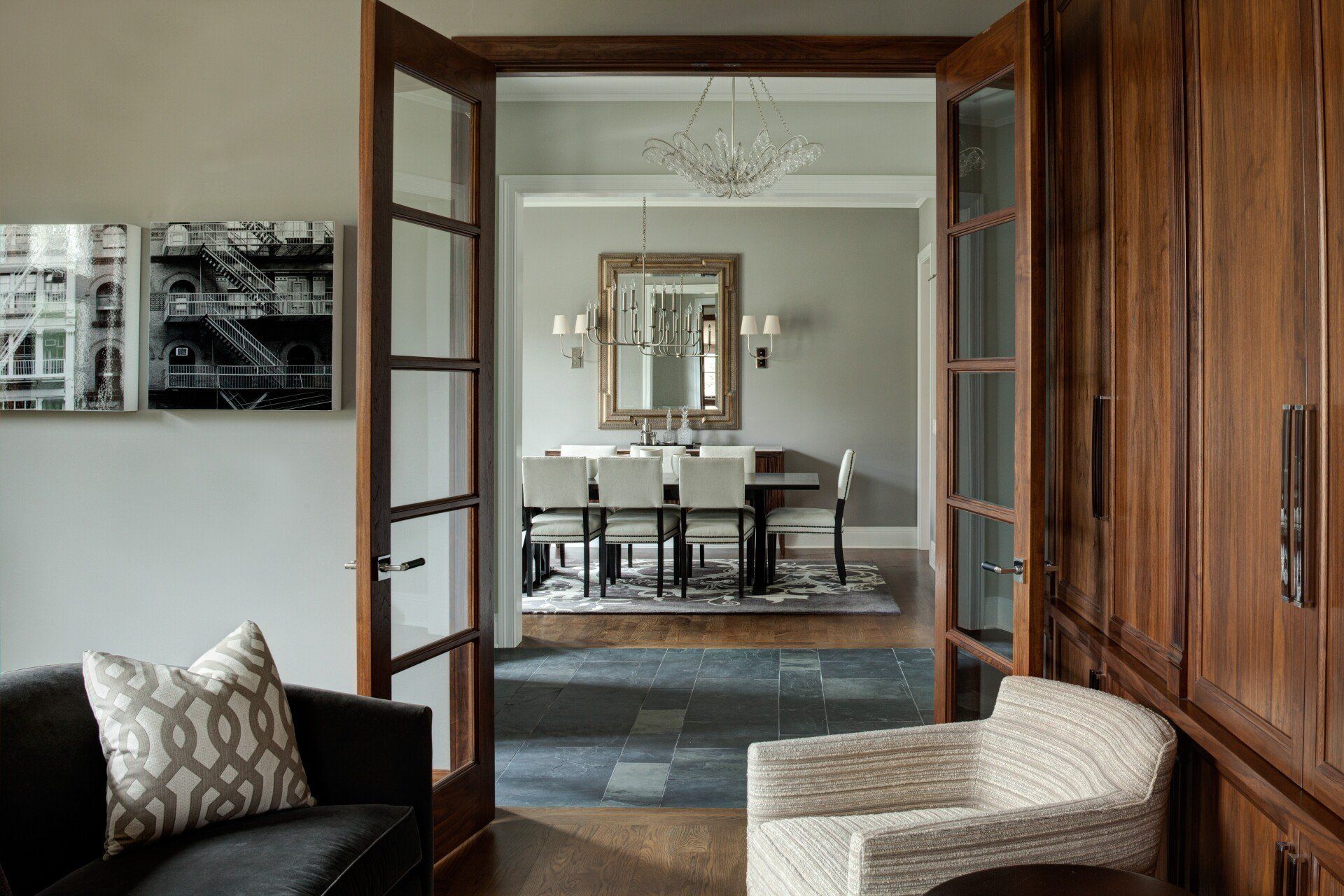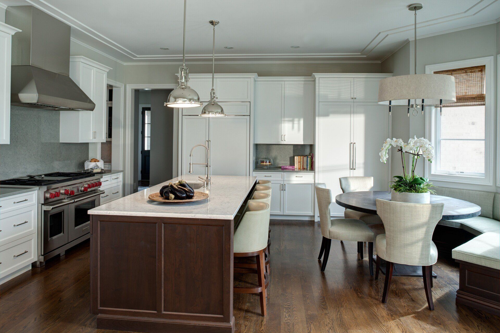A suburban retreat outfitted to properly transition a young family from their downtown digs. Built from the ground up, the sprawling space was designed to foster room to relax without sacrificing the client’s inherent style. Neutral tones with textural accents are the theme throughout.